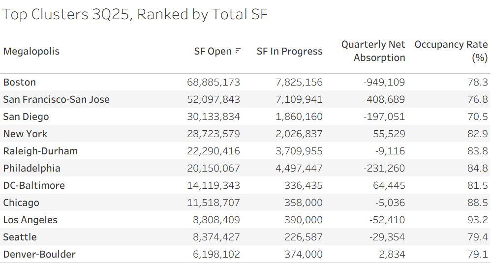 After several tough years marked by oversupply and slower demand, life science real estate has been searching for a bottom. Most major markets — from Boston to San Francisco and San Diego — continued to see occupancy declines in 3Q.